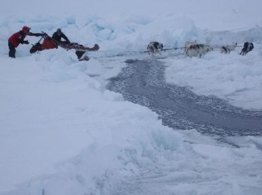 Το πιο σημαντικό όμως εμπόδιο στην πορεία για τον Βόρειο Πόλο είναι η ανοιχτή θάλασσα! Σχετικά συχνά η συνέχεια του πάγου διακόπτεται από μεγάλες εκτάσεις νερού, απροσπέλαστες από τα έλκηθρα αλλά και τους ανθρώπους. Ειδικά μάλιστα τα τελευταία χρόνια το Φαινόμενο του Θερμοκηπίου προκαλεί όλο και συχνότερα αυτό το φαινόμενο. Σε αυτή την περίπτωση, θα πρέπει οι αποστολές να περπατήσουν κατά μήκος αυτής της «όχθης» μέχρι να βρουν τη συνέχεια του πάγου ή να περιμένουν μία νύχτα (συνήθως) να παγώσει αυτή η έκταση για να συνεχίσουν. Το 1909, ο Peary σχεδόν στο ξεκίνημα της πορείας του παγιδεύτηκε για 6 ολόκληρες μέρες από ένα τέτοιο άνοιγμα. Τέλος, υπάρχει και η «αρνητική προώθηση», το φαινόμενο που οφείλεται στην αέναη κίνηση του επιφανειακού πάγου εξαιτίας των ρευμάτων και μπορεί να σπρώξει προς τα πίσω μια ομάδα, ανάλογα με το που τυχαίνει να βρίσκεται. Η μόνη ελπίδα σε μια τέτοια περίπτωση είναι η «θετική προώθηση», η τυχαία δηλαδή ευνοϊκή παράσυρση προς την σωστή κατεύθυνση.