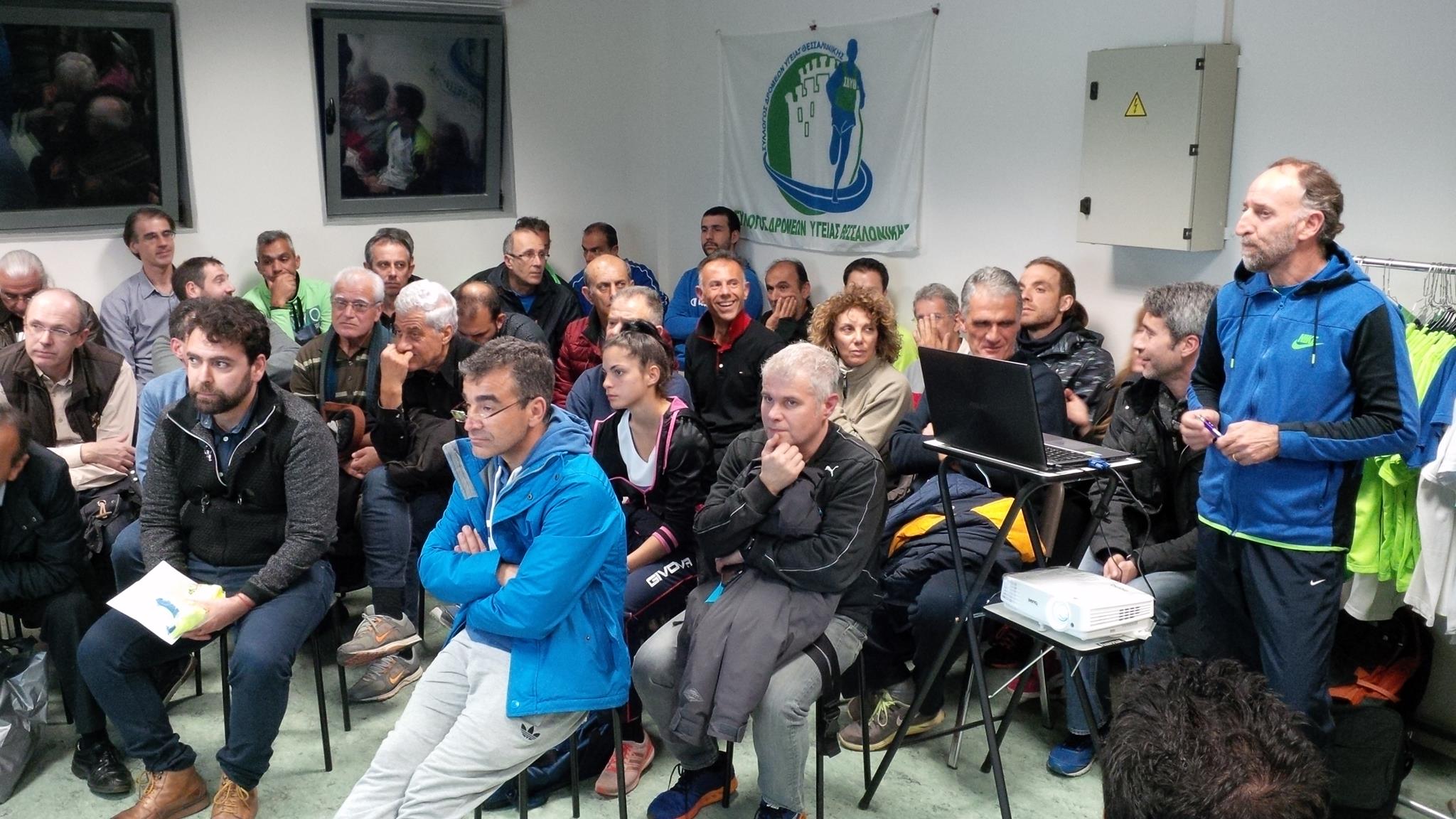 Ο Σ.Δ.Υ.Θεσσαλονίκης διοργανώνει την Τετάρτη 1 Νοεμβρίου 2017, στο γραφείο του στο Καυταντζόγλειο στάδιο (Θύρα 16), Ομιλία - Συζήτηση με θέμα : Στον Δρόμο προς το Καλλιμάρμαρο. Ομιλητής θα είναι ο Αντώνης Στόϊκος, προπονητής δρόμων, ο οποίος θα παρουσιάσει το πλάνο των τελευταίων ημερών για έναν ασφαλή και σίγουρο τερματισμό στον μαραθώνιο της Αθήνας. Η εκδήλωση είναι ανοικτή σε όλους τους φίλους συναθλητές και έχει ώρα προσέλευσης στις 19:25.