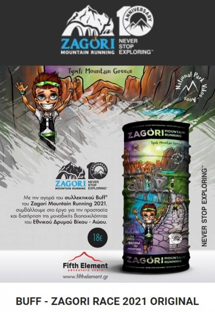 Το Zagori Mountain Running είναι το κορυφαίο αθλητικό γεγονός ορεινού τρεξίματος πανελλαδικά, το οποίο ξεκίνησε το 2011 και συνεχίζεται επί 10 έτη με συνεχώς αυξανόμενο ενδιαφέρον από αθλητές από όλο τον κόσμο! To 2015 διακρίνεται με το βραβείο Silver Tourism Awards και το 2019 η Διοργάνωση σημειώνει ρεκόρ συμμετοχών με 2.350 Έλληνες και ξένους αθλητές και πάνω από 12.000 επισκέπτες, αναδεικνύοντας το Ζαγόρι ως έναν ιδανικό αθλητικό και τουριστικό προορισμό. Η Fifth Element από την πρώτη κι όλας χρονιά του αγώνα, είναι δίπλα του, ως χορηγός. Ειδικά φέτος, που το Zagori Mountain Running γιορτάζει τα 10 χρόνια με μια επετειακή διοργάνωση, η Fifth Element διαθέτει αποκλειστικά το συλλεκτικό BUFF® - ZAGORI MOUNTAIN RUNNING 2021 ORIGINAL!