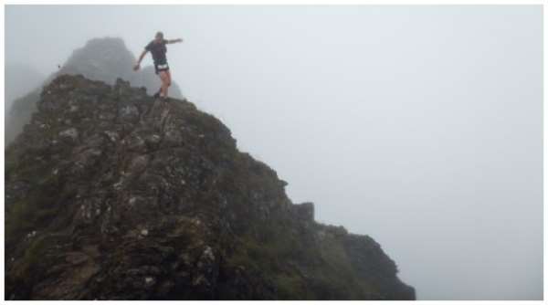 It’s a tough course, but three sections are particularly notorious. “Striding Edge is really steep and exposed ground, a knife-edge ridge. It’s hand on rock, again. You’ll want three points of contact on rock as much as possible. Use your hands. Use your climbing skills.”