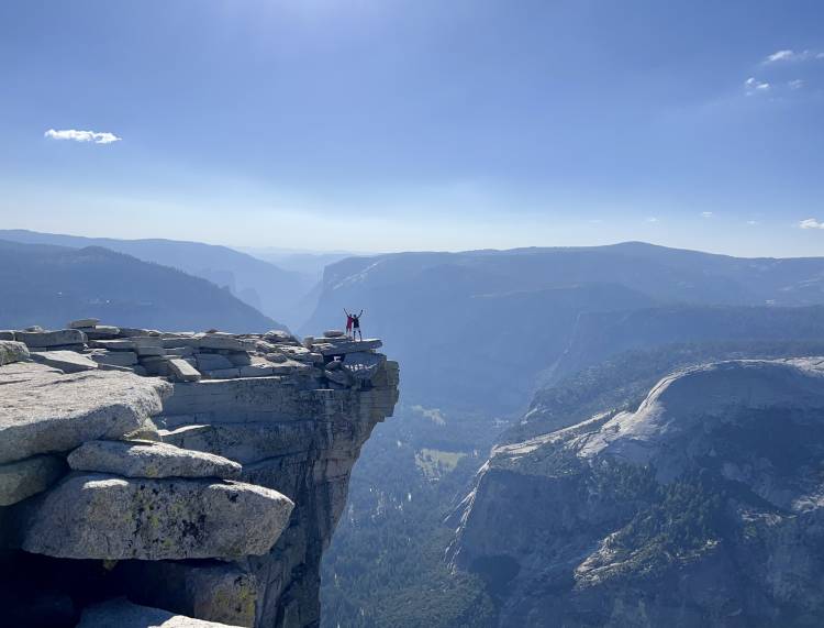 [Dean Karnazes]: Έχοντας ζήσει στην Καλιφόρνια σχεδόν όλη μου τη ζωή, έχω ένα θησαυρό γεμάτο αναμνήσεις. Μία από τις αγαπημένες μου διαδρομές είναι από την Κοιλάδα Yosemite μέχρι την κορυφή του Half Dome. Στο τελευταίο τμήμα χρειάζεται να ανεβείς σε μια απότομη γρανιτένια πλαγιά χρησιμοποιώντας σκοινιά. Όμως η πανοραμική θέα από την κορυφή είναι εξαιρετική.
