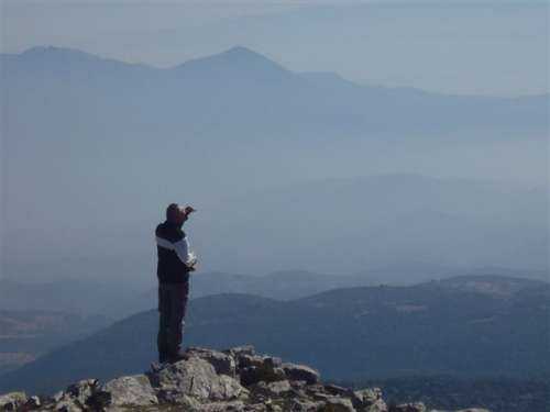 Η διάθεση ανέβαινε όσο προχωρούσαμε προς την κορυφή. Φαίνεται πως η ενέργεια του βουνού μας φόρτωσε με β-ενδορφίνη. Τίποτα δεν μας σταματούσε. Εύκολο σχετικά το τελικό ανέβασμα, με πολλές τραβέρσες και ένα οροπέδιο μακρινάρι. Η θέα φυσικά μας αποζημίωσε. Κάτω και βόρεια η θέση που έπεσε το στρατιωτικό αεροπλάνο C130, το 1991, πριν 22 χρόνια, με τους 61 νεκρούς. Φαίνονται από μακριά απλωμένα τα μνημεία - κενοτάφια, που έχουν στηθεί για κάθε παλικάρι.