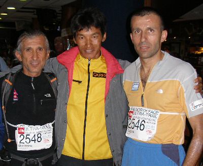 «Επ, ποιος είναι αυτός εδώ δίπλα μας τώρα, ο Dawa?» Δεν το πιστεύω, ένα από τα ινδάλματά μου είναι δίπλα μου, δεν χρειάζεται καν να τσιμπηθώ, είναι αλήθεια. Τον πλησιάζω και τον ρωτώ. Ναι αυτός είναι. Του συστηνόμαστε με τον Δημήτρη και του δίνω τα χαιρετίσματα από το φίλο μας τον Μιχάλη το Στύλλα (είχαν γνωριστεί το 2003 σε αγώνα στα Ιμαλάια και κράτησαν επαφή από τότε). «Είχα έναν έντονο πόνο στο πόδι εδώ πίσω» δείχνοντας τον δικέφαλο «και αναγκάστηκα να τα παρατήσω». «Δεν πειράζει Dawa είσαι σπουδαίος έτσι κι αλλιώς. Χαρήκαμε που σε γνωρίσαμε από κοντά. Με την ευκαιρία, κάνουμε κι εμείς έναν αγώνα στην Ελλάδα (Olympus Marathon). Θα σε καλέσουμε να έρθεις να τρέξεις εκεί, θα ήταν τιμή για μας» δεν χάνω την ευκαιρία να του πω. Ανταλλάσουμε στα γρήγορα e-mail και φωτογραφιζόμαστε, ενώ οι υπόλοιποι γύρω μας συνεχίζουν να αναπαύονται και να απολαμβάνουν το γεύμα τους. Φύγαμε! Καλή αντάμωση με τα παιδιά της υποστήριξης στο Champex, οχτώ ώρες αργότερα, αν όλα πάνε καλά πάντα.